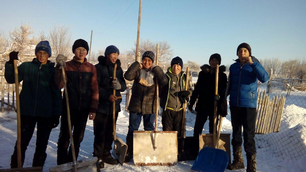 І.Жансүгіров атындағы орта мектебінің бастауымен, 8,9,10 сынып оқушылары ауылымыздың қарт әжесі Болысбаева Жұмаш апайымыздың ауладағы қарын күреп, үйілген қарды сыртқа шығарып, Байтақов Елеусіз ағамыздың үйіне барып қарын күреп отын бұтап көмек көрсетті. Аталмыш шара ең алдымен мектебіміздің оқушылары қарттарға деген қайырымдылығын және көмек көрсетуге әрдайым дайын екендігін көрсетті.