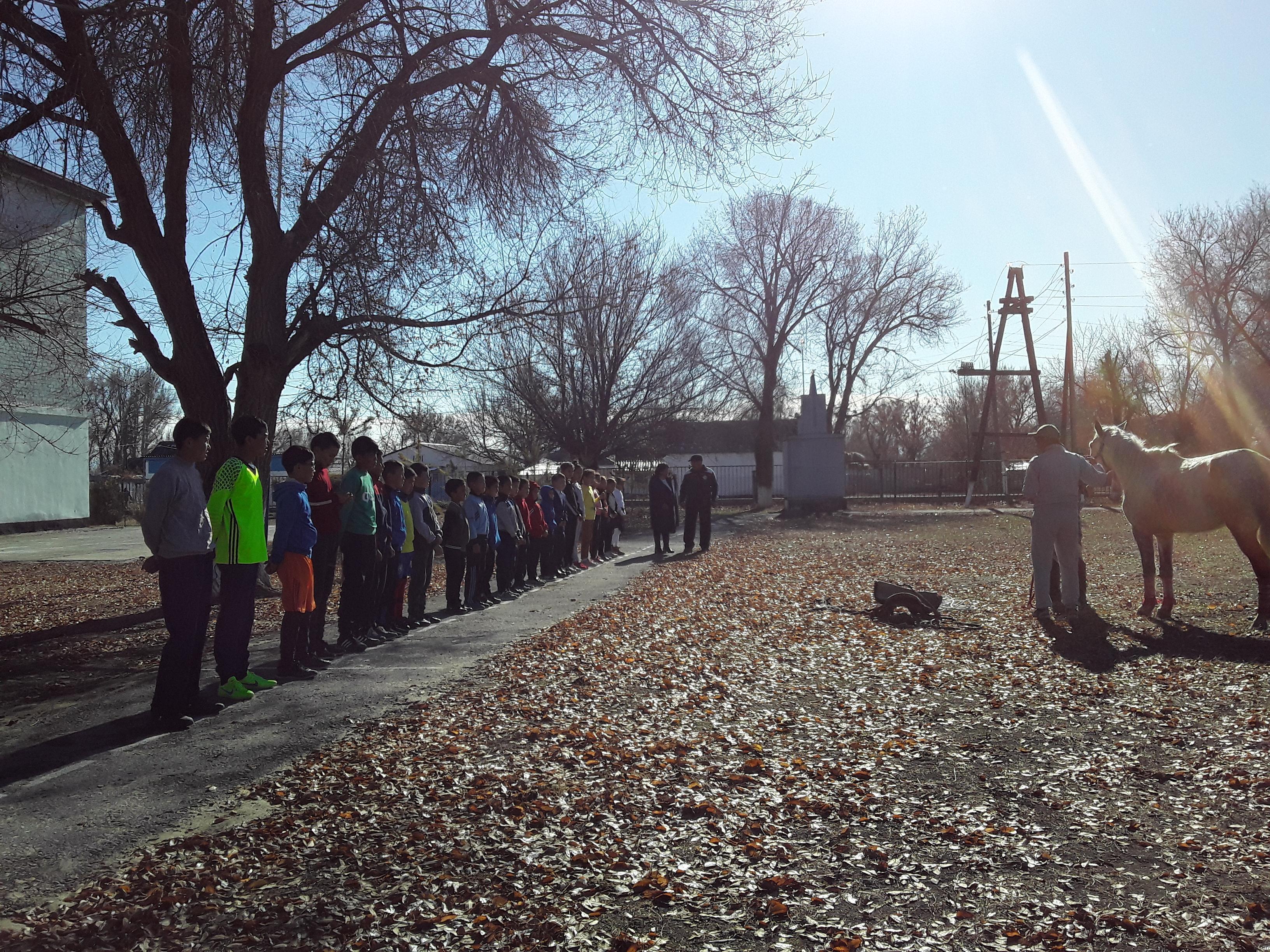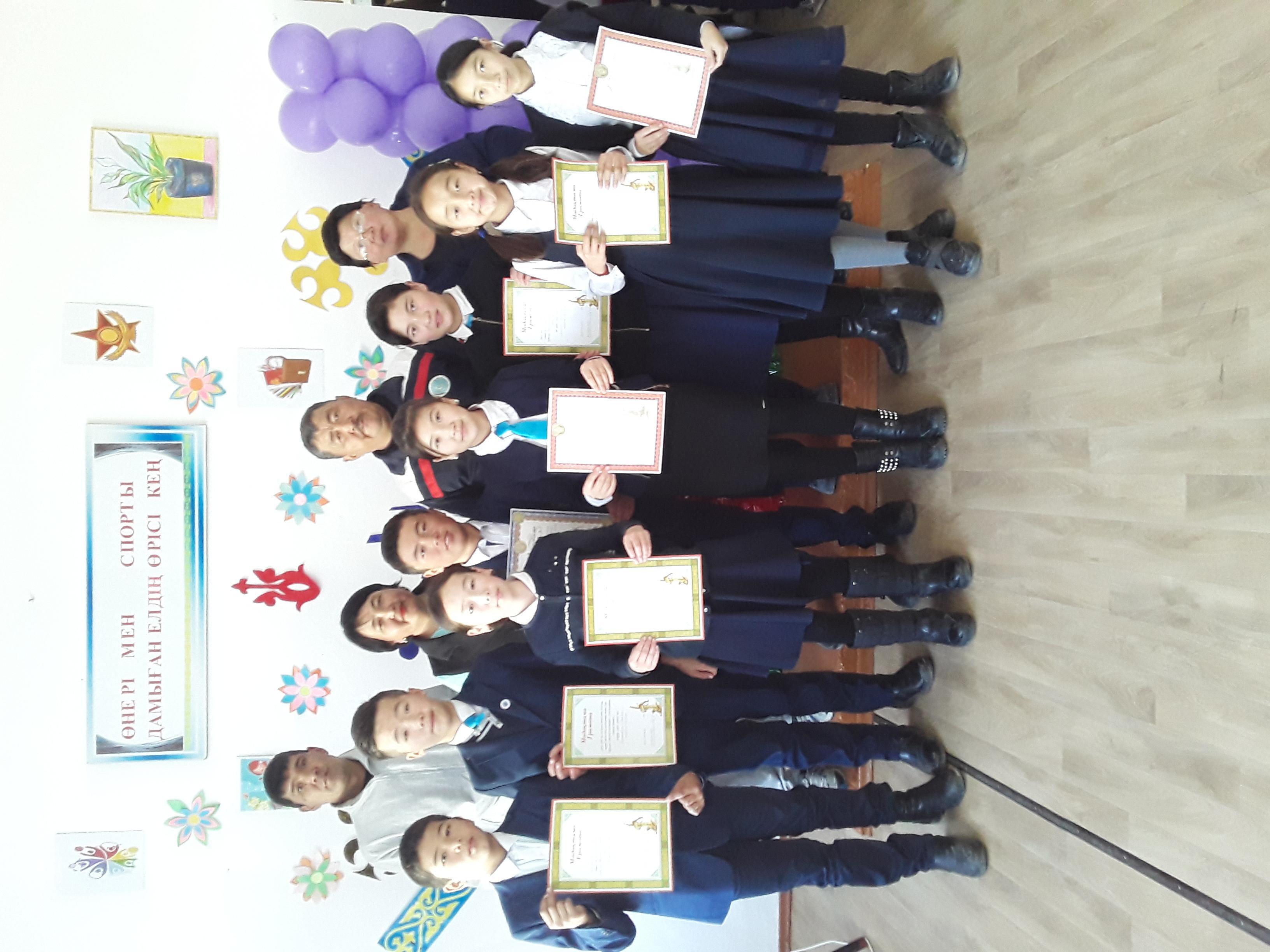« Мәңгілік ел ұландары » деген тақырыпта музыкалық сайыс өткізді.7 қараша күні - дене шынықтыру пәнінің мұғалімі Е. Қалқаман 6 сыныппен «Спорттық ойындарда