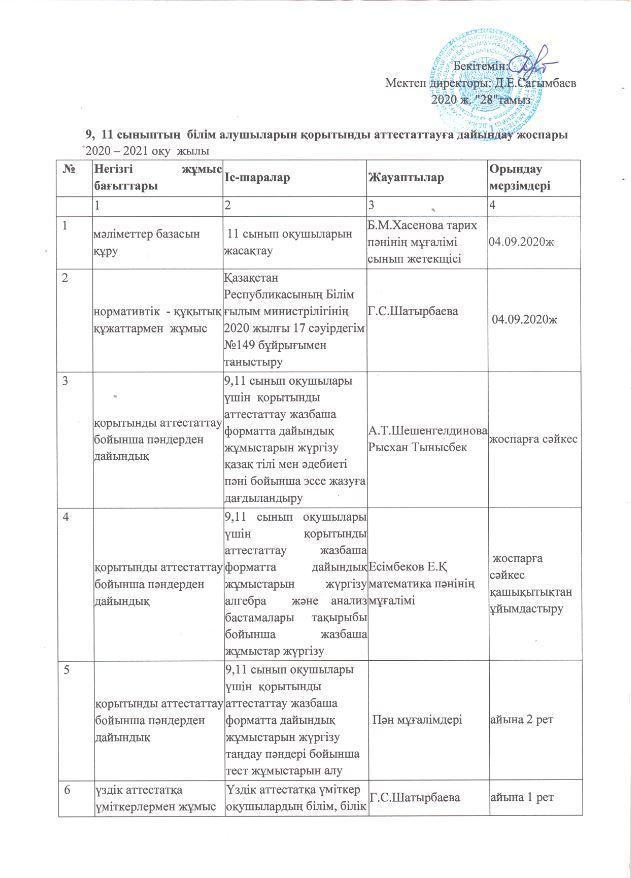 ҰБТ » "Ілияс Жансүгіров атындағы орта мектебі, мектепке дейінгі шағын орталығымен" коммуналдық мемлекеттік мекемесі