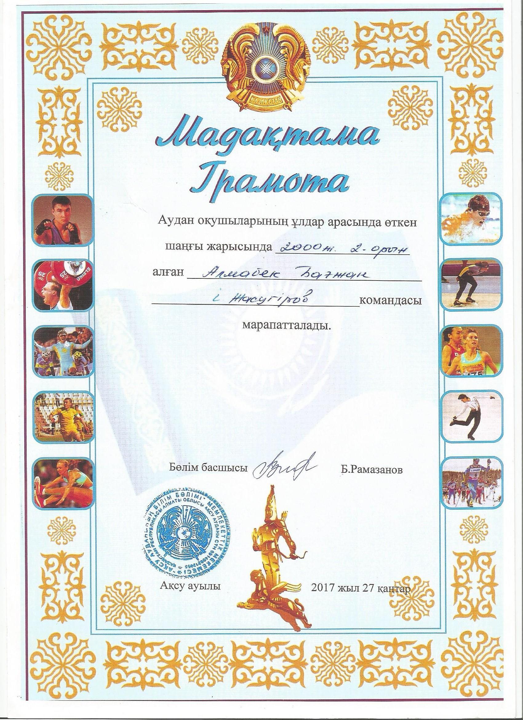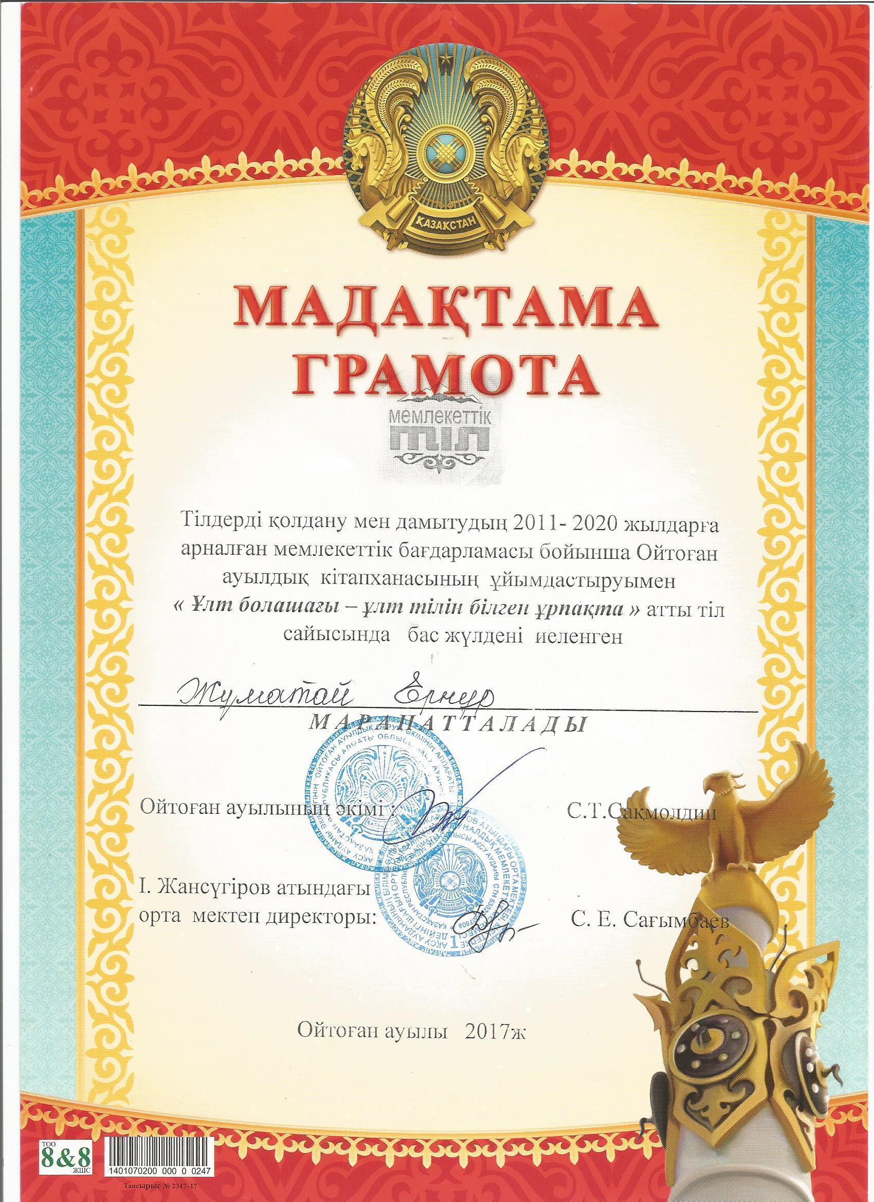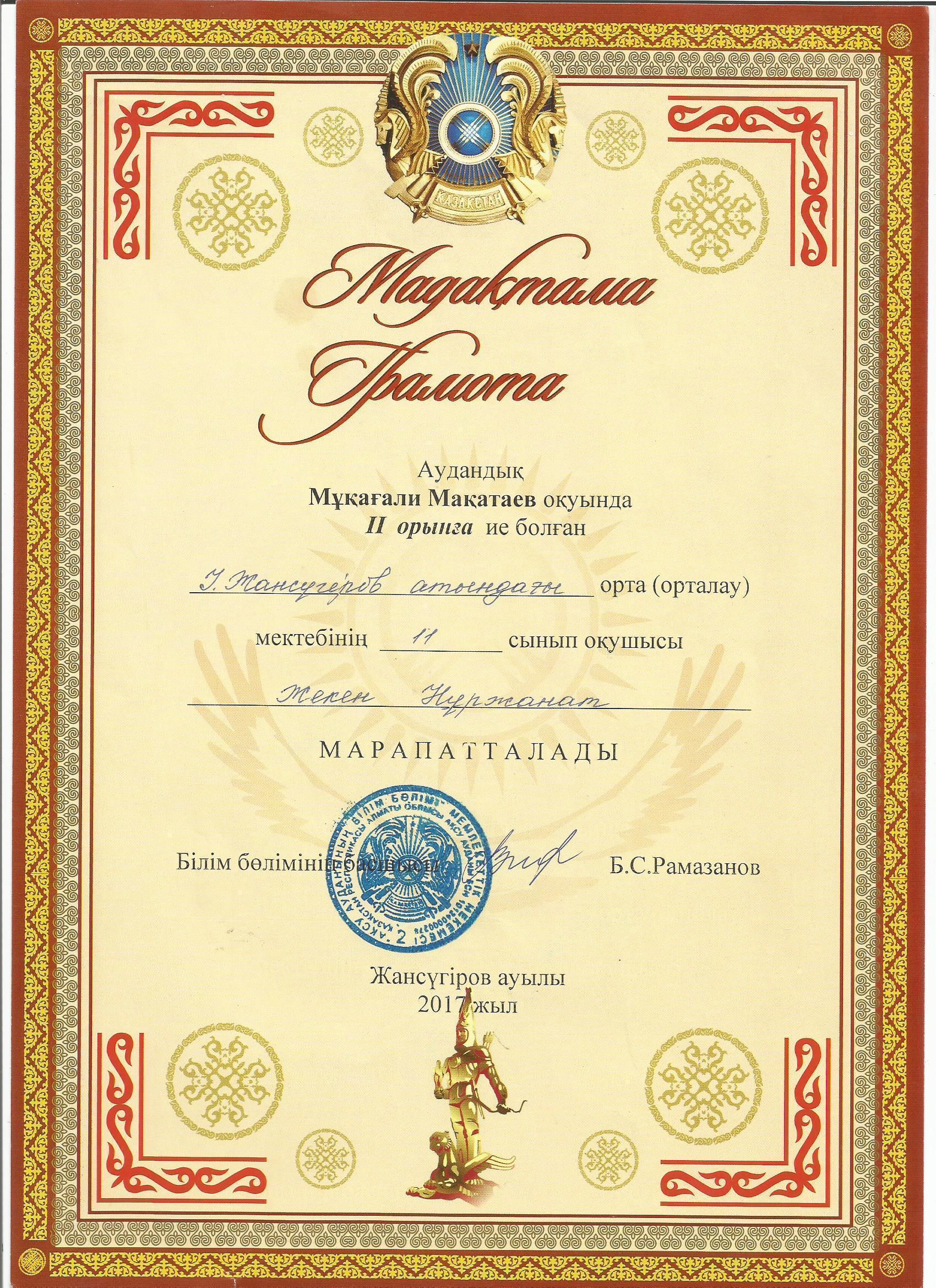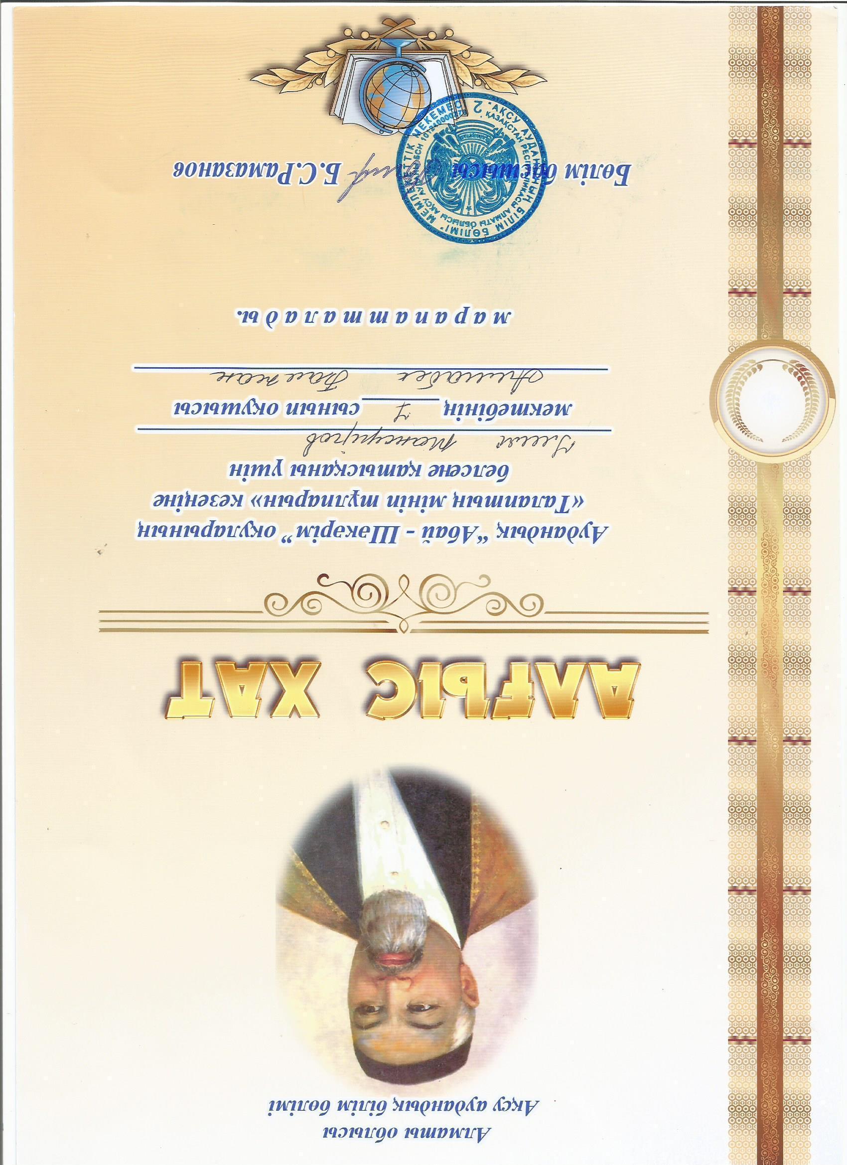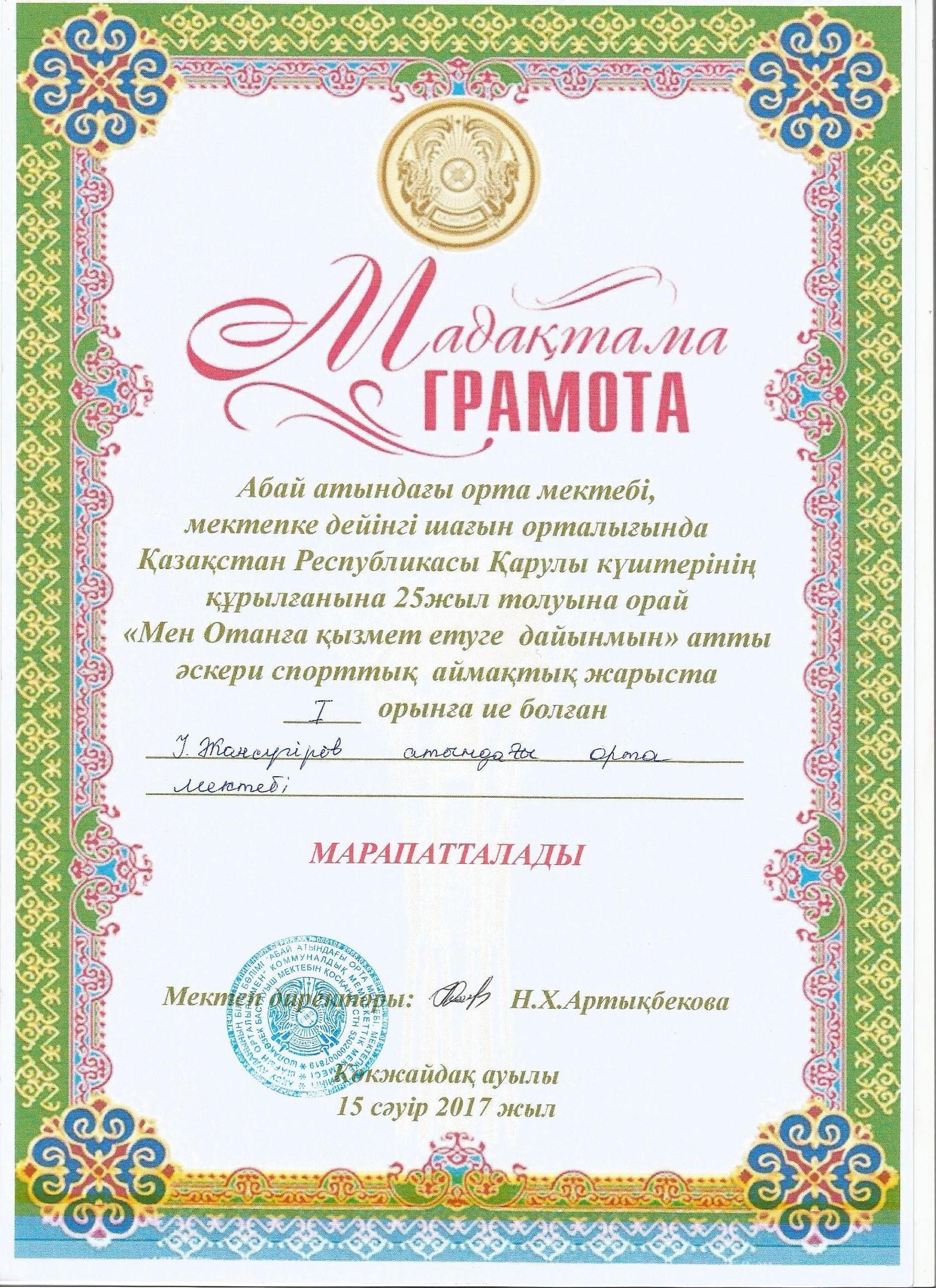 Оқушылар жетістіктері » "Ілияс Жансүгіров атындағы орта мектебі, мектепке дейінгі шағын орталығымен" отдела образования Кербулакского района