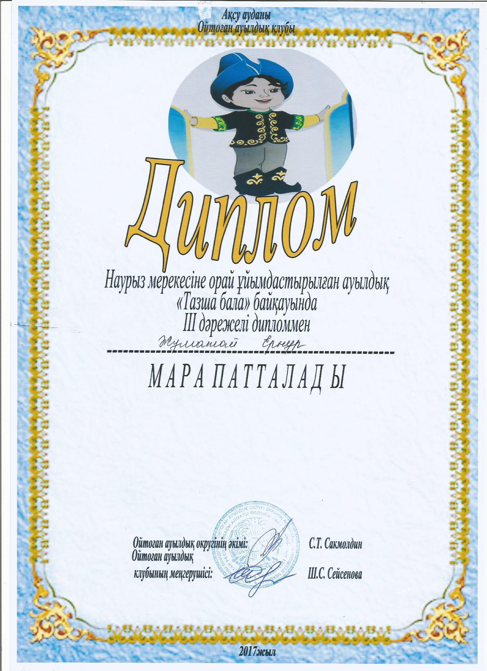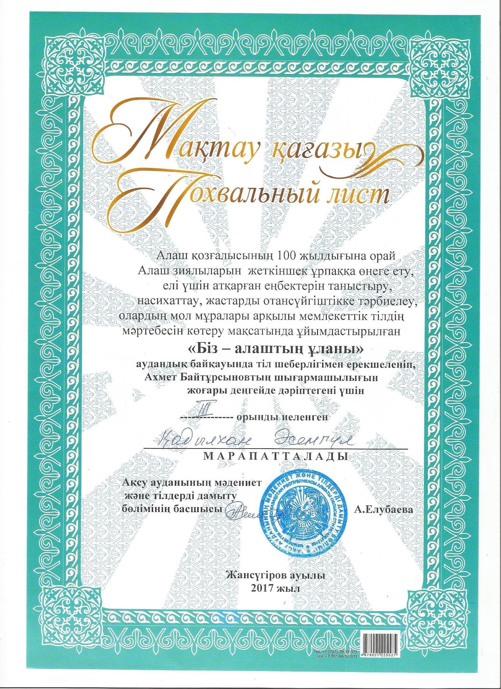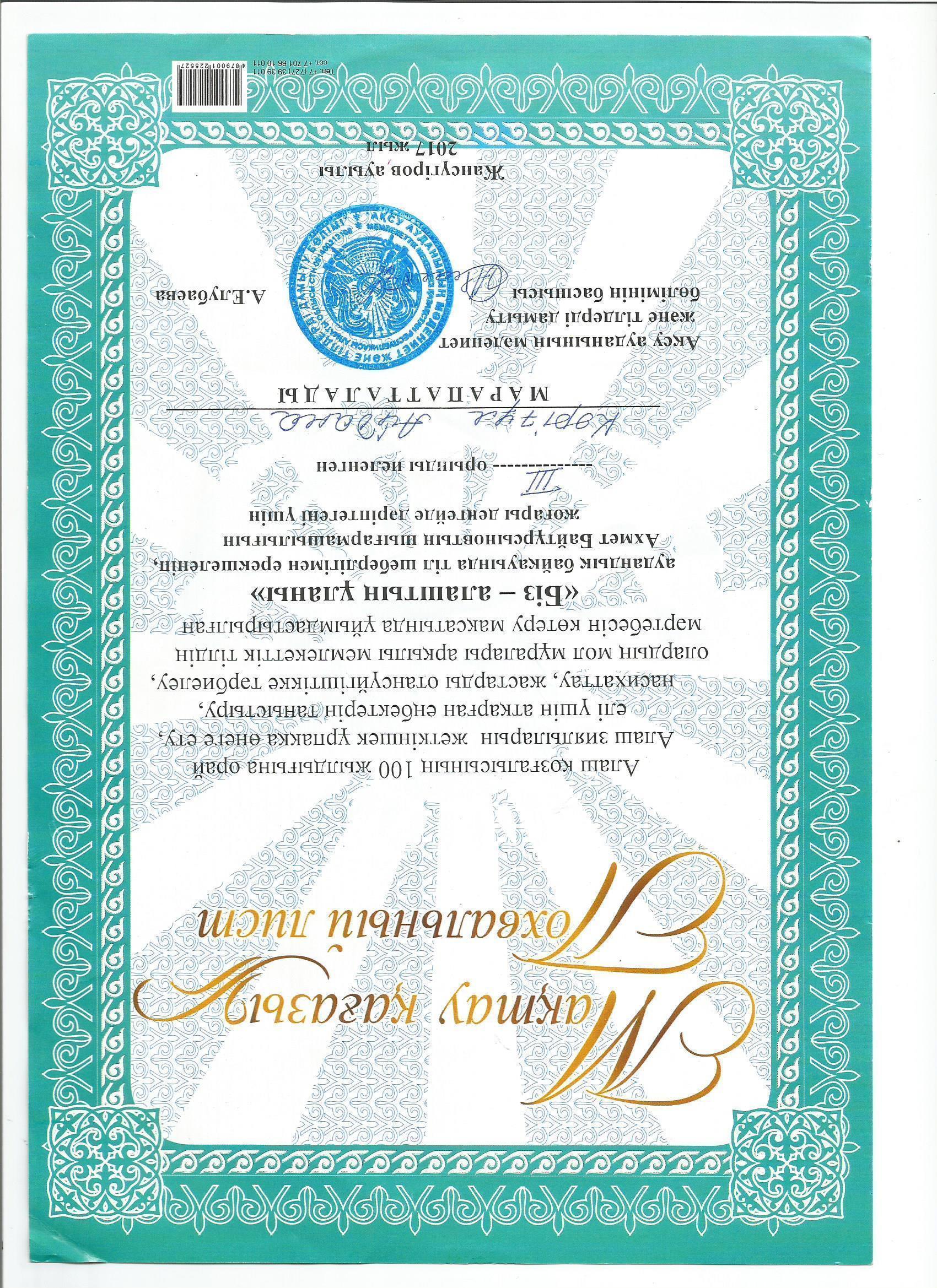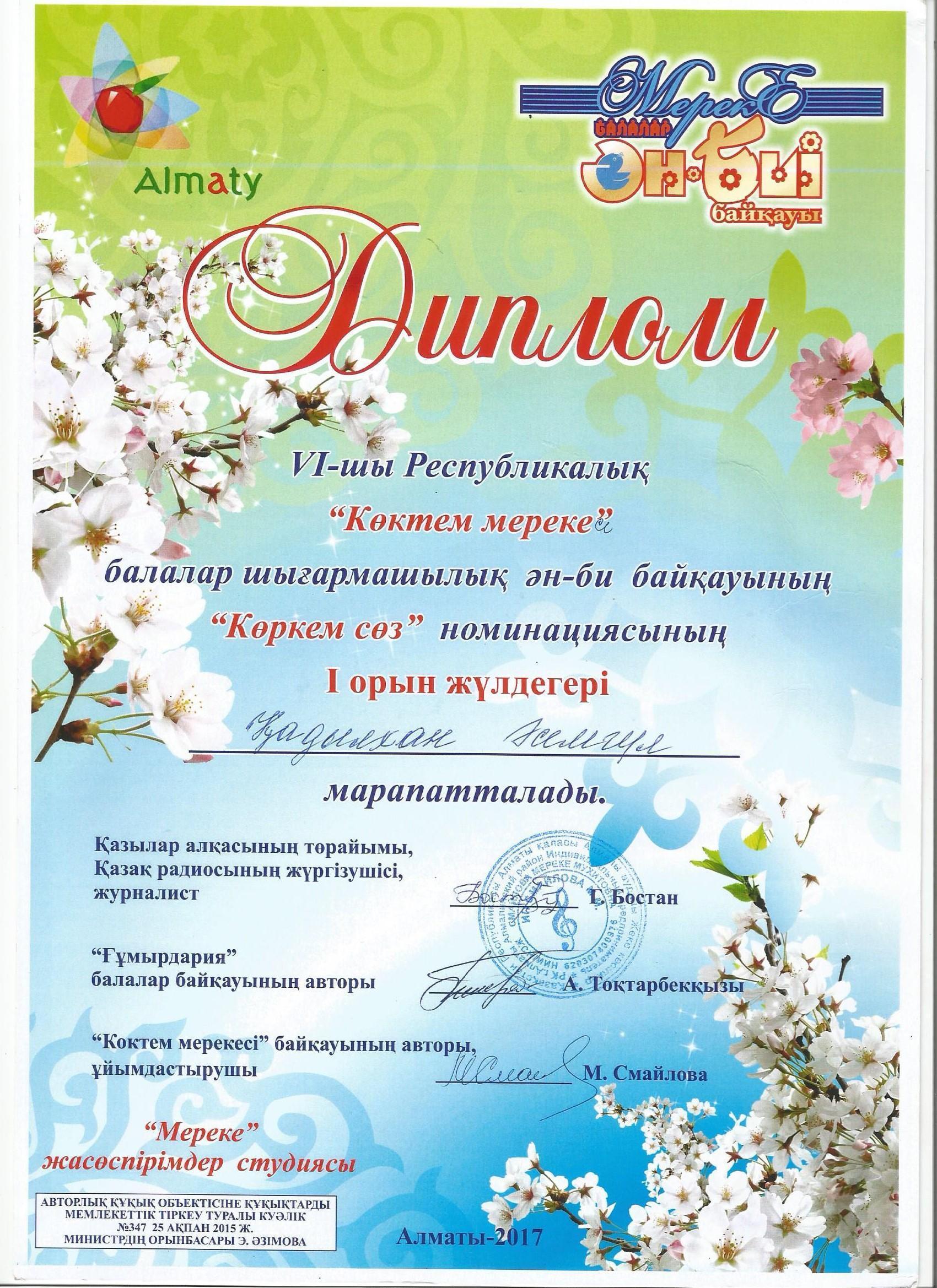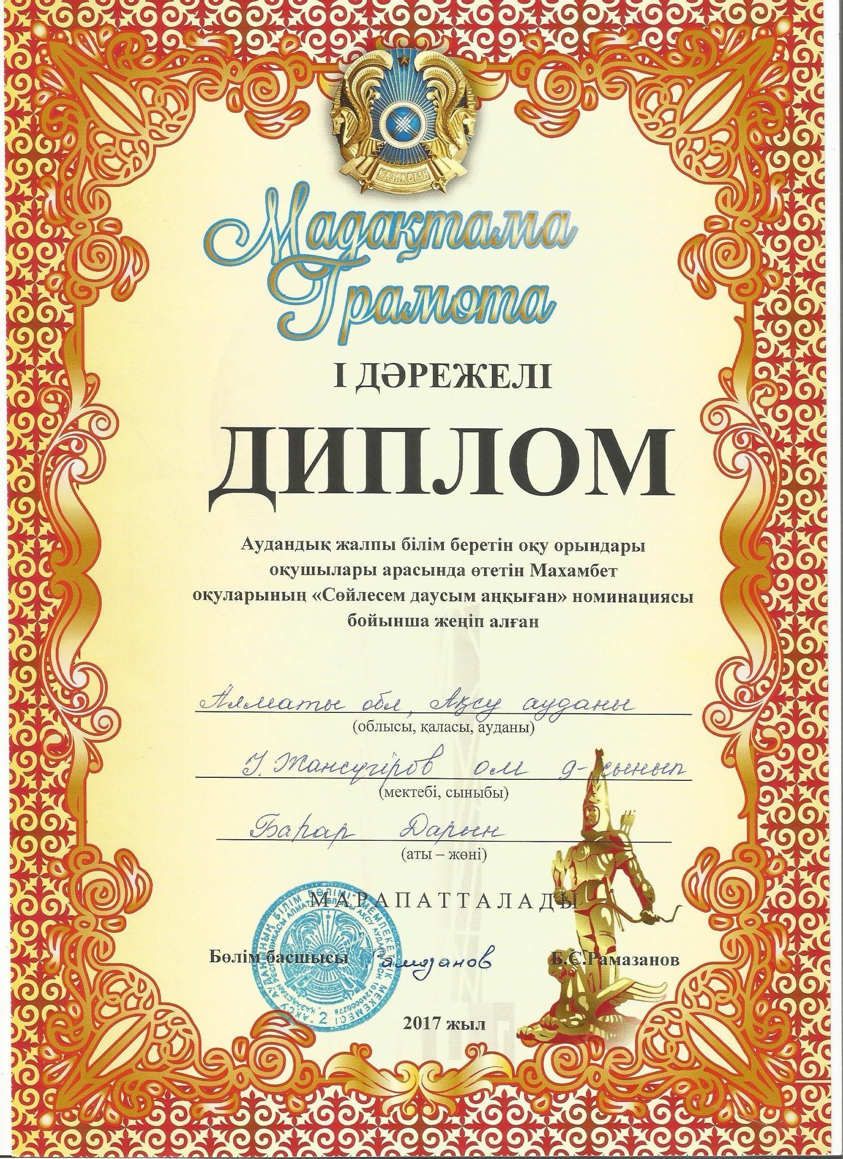 Оқушылар жетістіктері » "Ілияс Жансүгіров атындағы орта мектебі, мектепке дейінгі шағын орталығымен" отдела образования Кербулакского района