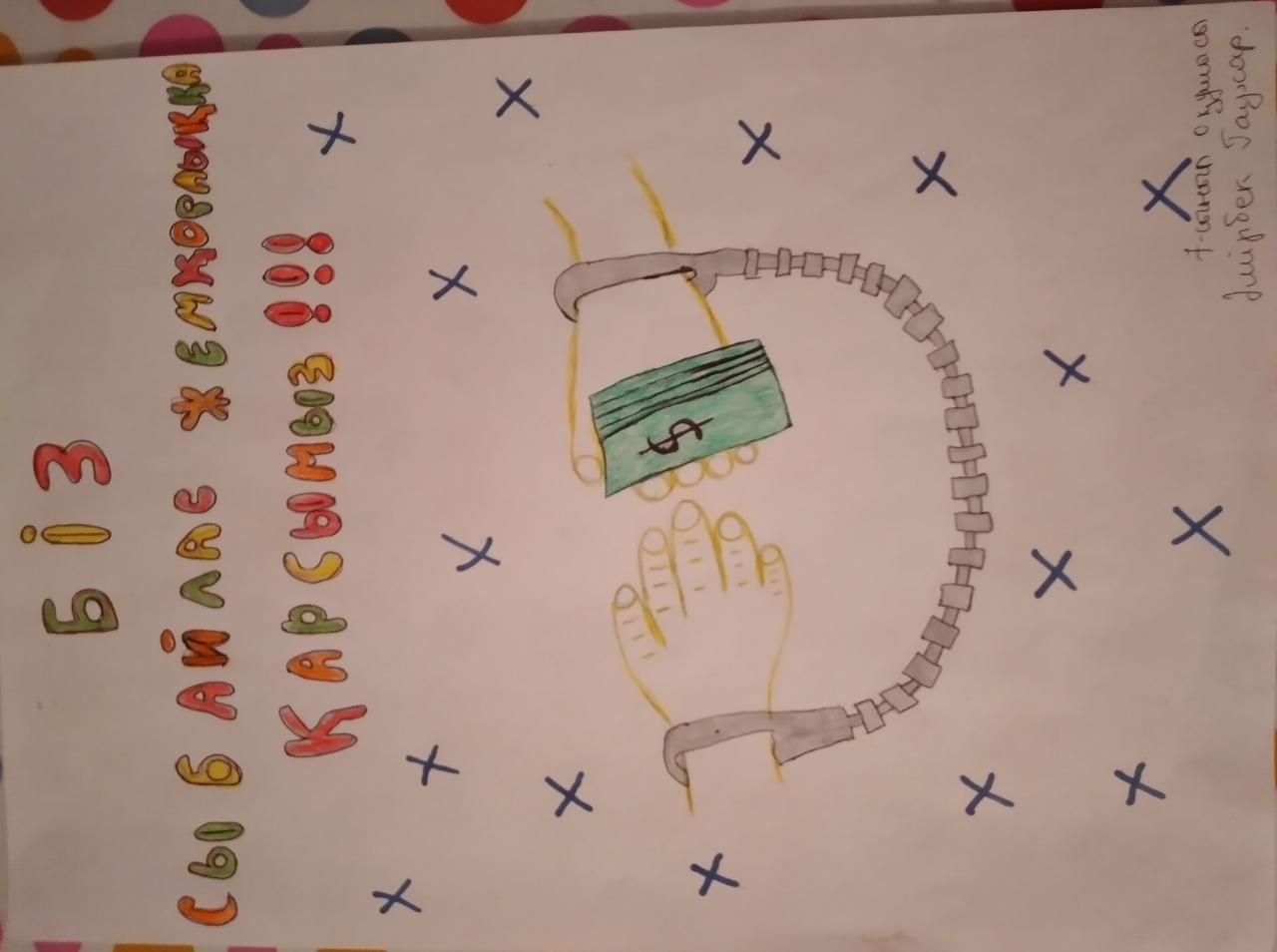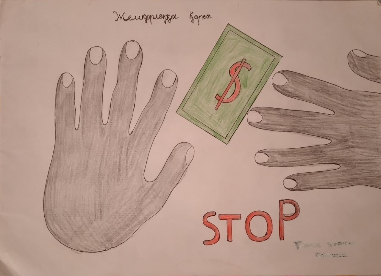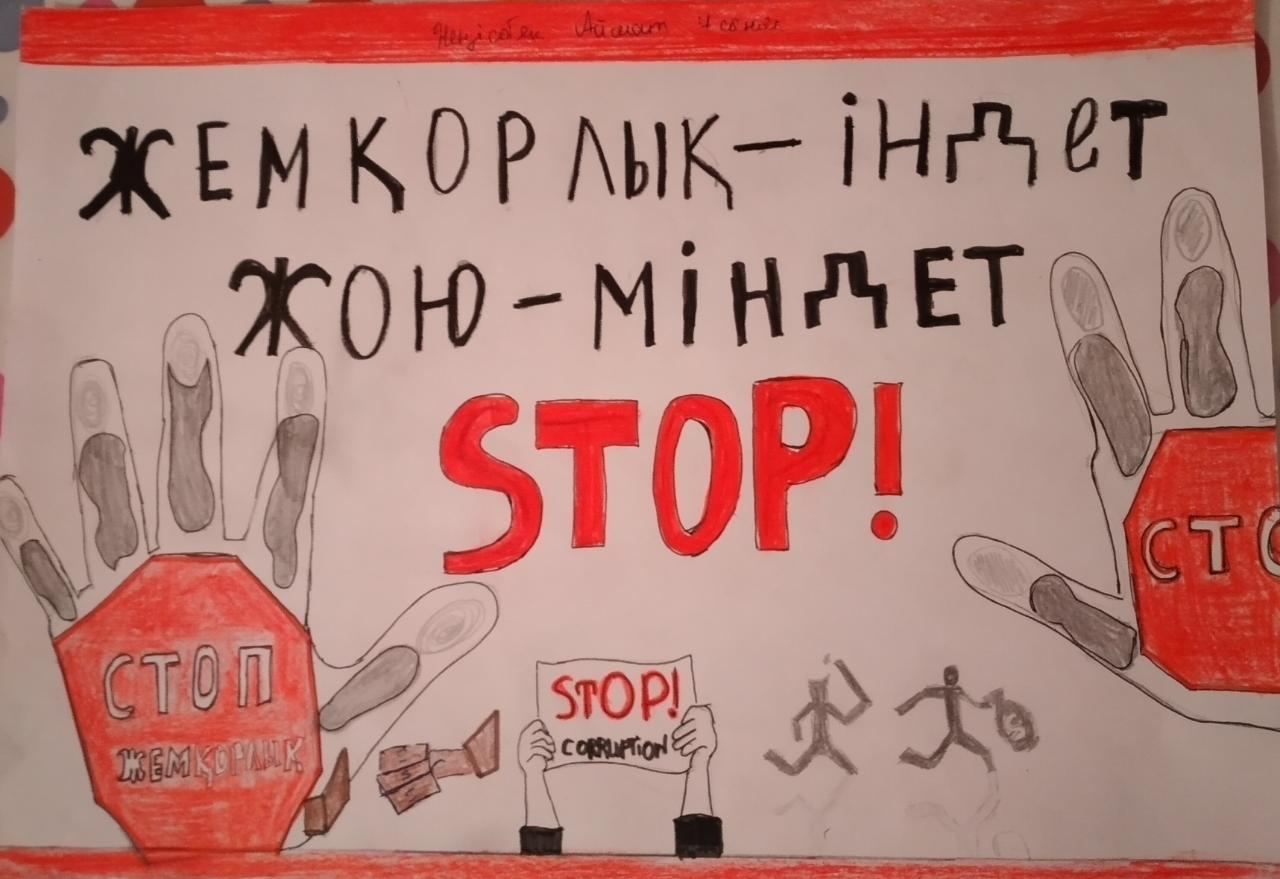 «І. Жансүгіров атындағы орта мектебі, мектепке дейінгі шағын орталығымен» коммуналдық мемлекеттік мекемесінің білім алушылар арасында 9 желтоқсан жемқорлыққа қарсы халықаралық күрес күніне орай “Сыбайлас-жемқорлық” деген ұғымды түсіндіріп, пайда болу жағдайлары жайлы түсінік қалыптастыра отырып,өз көзқарастарын, дүниетанымдарын кеңейту,өз ойларын ,қабілеттерін еркін білдіріп, жеткізе білу, патриоттық тәрбие қалыптастыру мақсатында «Біз сыбайлас жемқорлыққа қарсымыз» деген тақырыпта сурет көрмесі ұйымдастырылды.
